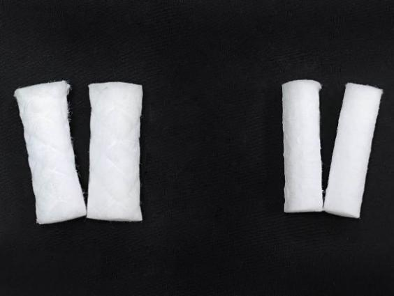 För det andra, eftersom flätad bomullsrulle är fluffigare än vanlig dentalbomull, är absorptionsförmågan hos flätad bomullsrulle mycket större än den vanliga under samma storlek. Absorptionsförmågan hos dental bomull är huvudsakligen i två aspekter, vattenabsorptionshastighet och vattenabsorptionsvolym. Eftersom bomullsfibrerna i flätad bomullsrulle är vertikala och bomullsfibrerna i vanlig dentalbomull är spiralformade, kommer vattenabsorptionshastigheten för flätad bomullsrulle att vara snabbare och mer vätska kommer att absorberas.