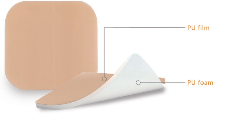 Foam Dressing med PU-film är gjord av skyddande PU-filmbaksida och absorberande PU-skum. Den används för att absorbera exsudat från sårytan, hålla sårdelen fuktig, ge en fuktig läkningsmiljö och påskynda sårläkning.