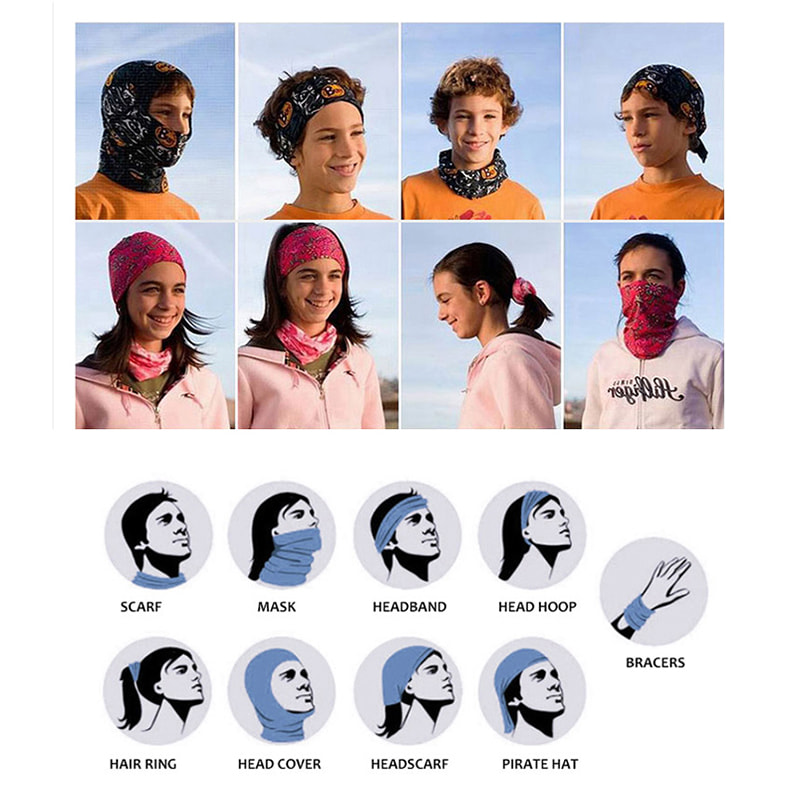 Användning: Kan användas som huvudduk, halsduk, sandmask, armband, hårbälte, etc.