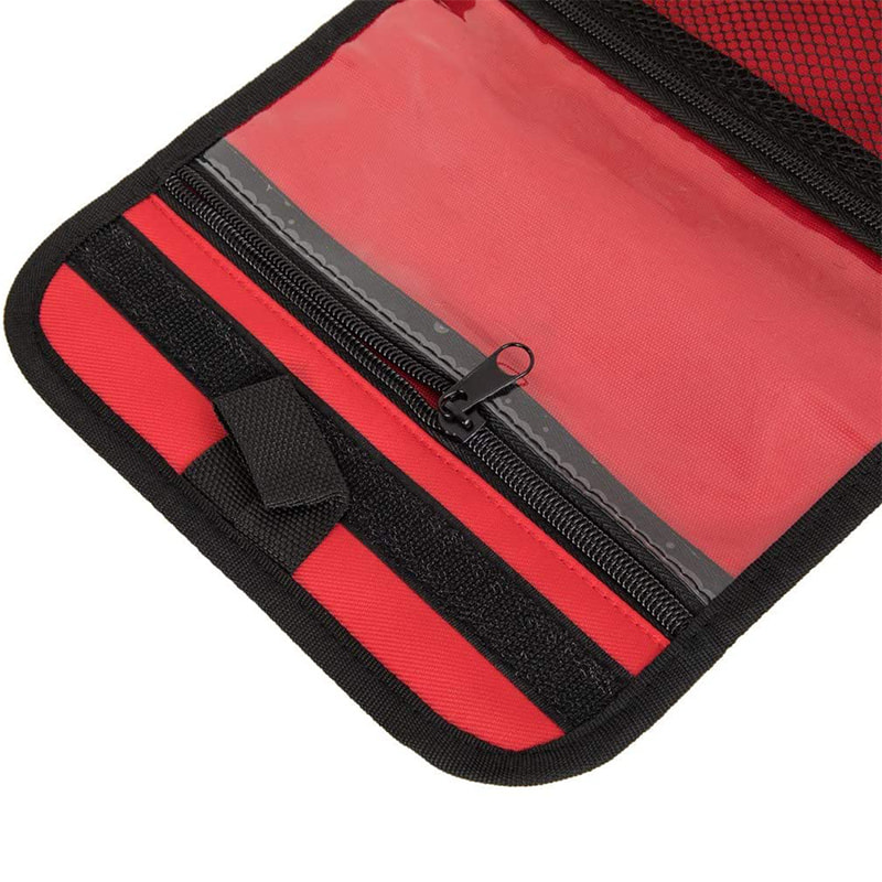 Den mångsidiga första hjälpen-väskan har nätfickor samt en utfällbar del för att ge gott om förvaring.