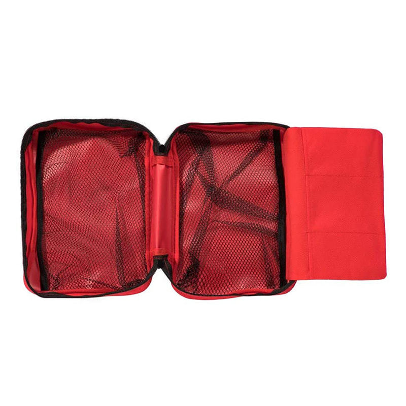 Den mångsidiga första hjälpenväskan har nätfickor samt en utfällbar del för att ge gott om förvaring.