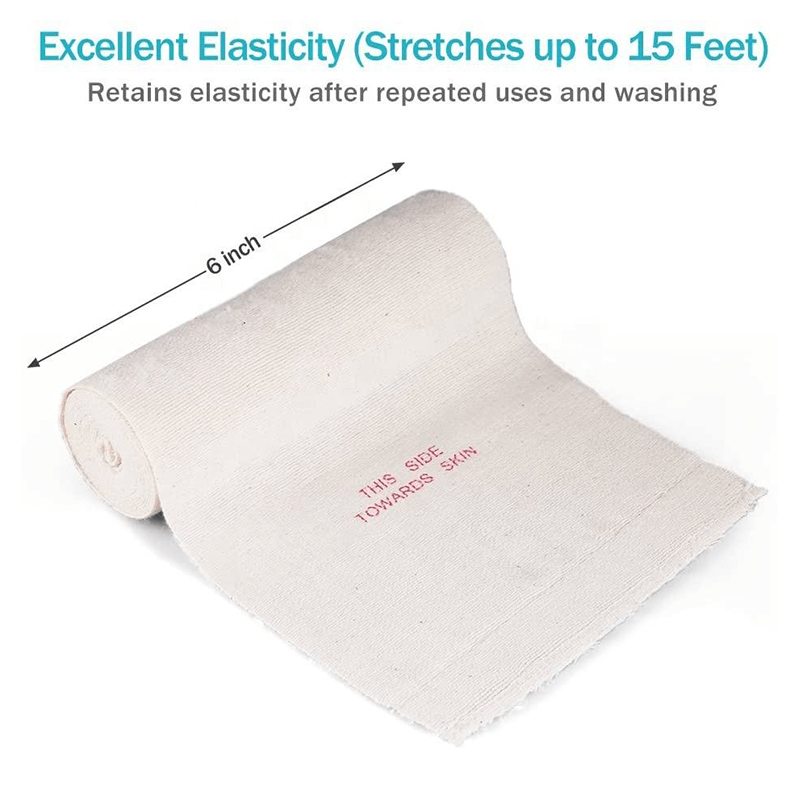 Varje elastiskt bandage är 15 fot långt när det sträcks.