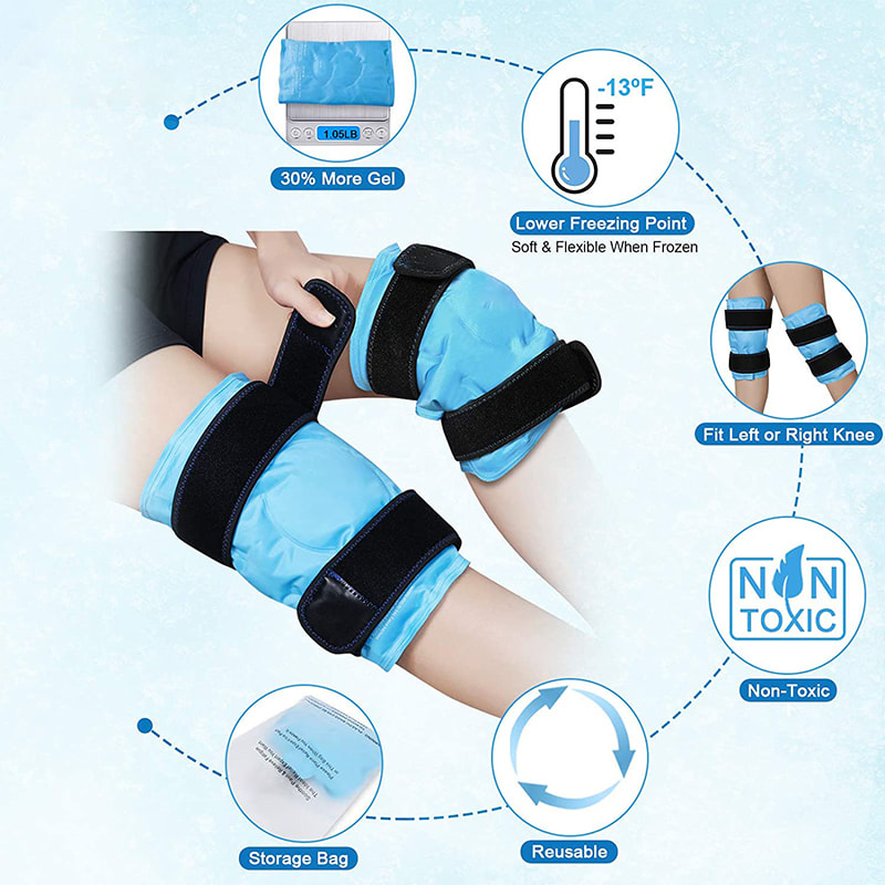 Återanvändbara ispåsar för skador är vändbar design, passande för vänster eller höger knä och universell passform för människor.