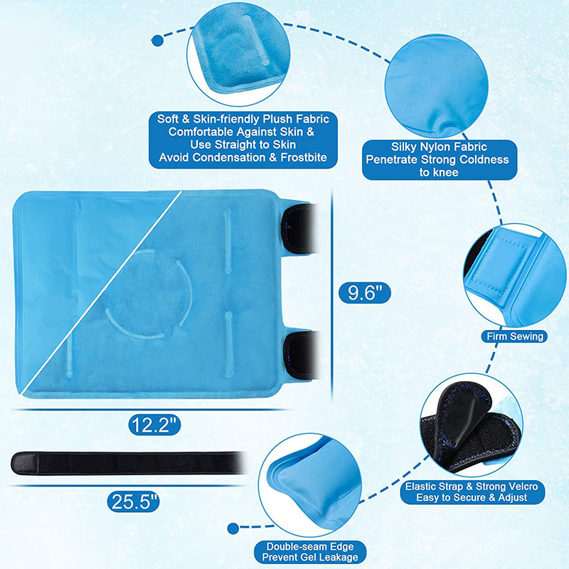 Relief knee-ispaketet antar ett skonsamt och hudvänligt mjukt plyschtyg som penetrerar mild kyla till stukat knä och inte skulle generera kondens som gör att din trasa blir våt, så den mjuka plyschen är tillgänglig att använda direkt på huden, vilket tar bort en rädsla för köldskador. Börja på plyschsidan och vänd sedan för att använda silkeslen nylon, genomträngande intensiv kyla om du känner att plyschsidan inte är tillräckligt kall.