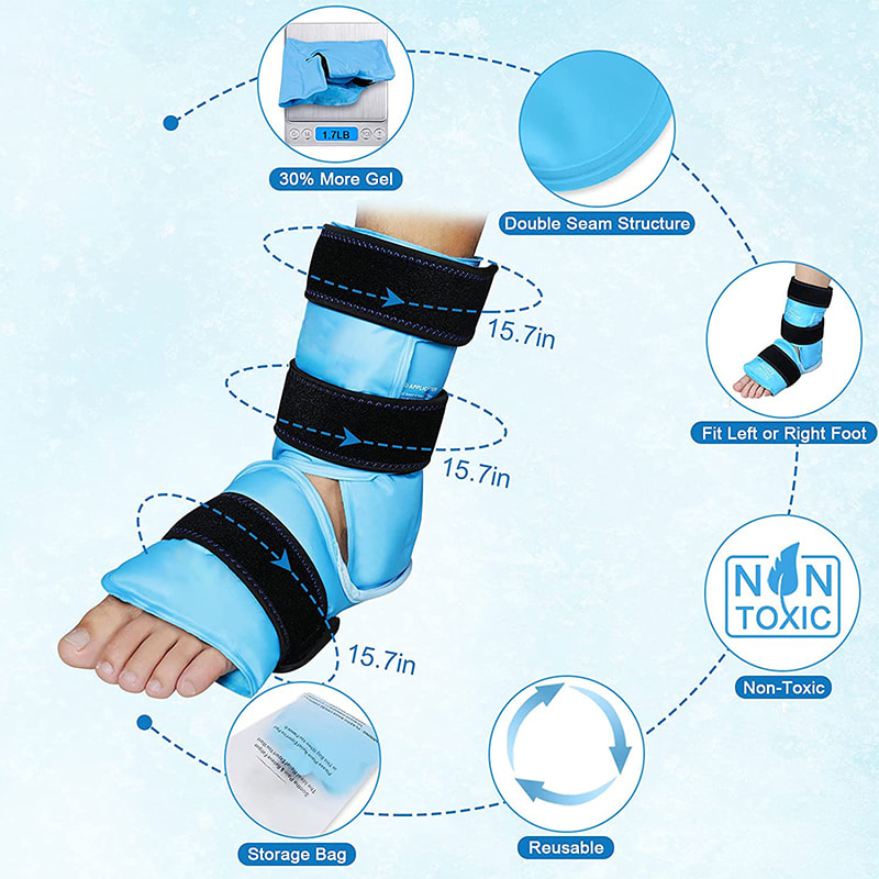 Ispack för ankel med 360 heltäckande design kan linda fotleden och foten i alla riktningar, vilket effektivt kan lindra muskelsmärta efter träning eller svullnadsvärk efter skada.