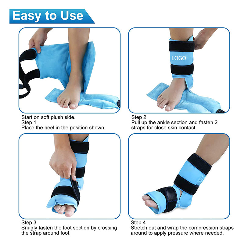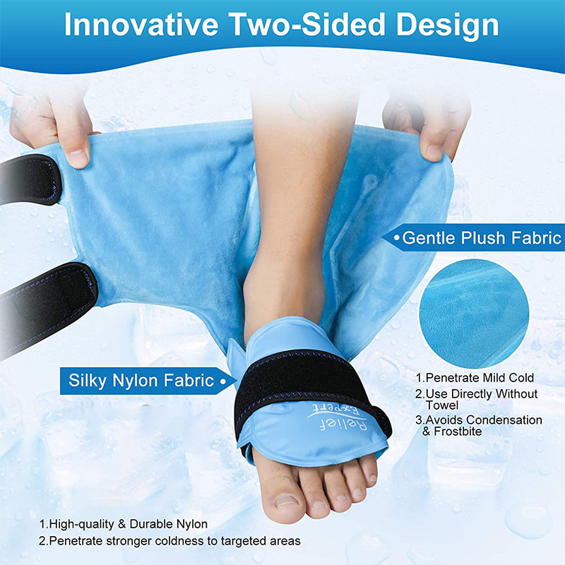 Ankel-ispacken kommer med elastiska neoprenremmar som enkelt kan justeras för att passa anklarna och ger kraftfull kallkompressionsterapi för att få den lugnande effekten på ankelsmärtor, fotsmärtor och hälsmärta.