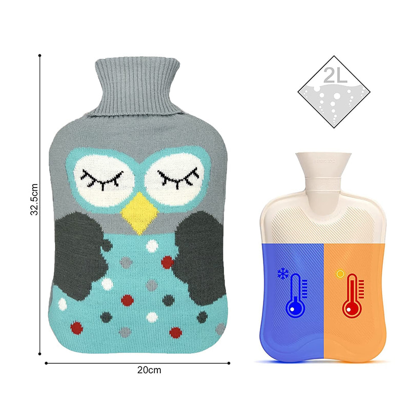 Den är gjord av högkvalitativt och återvinningsbart PVC-material, som hjälper till att hålla värmen längre än traditionell varmvattenflaska av silikon, fungerar också som en ispåse eller kallvattenflaska.