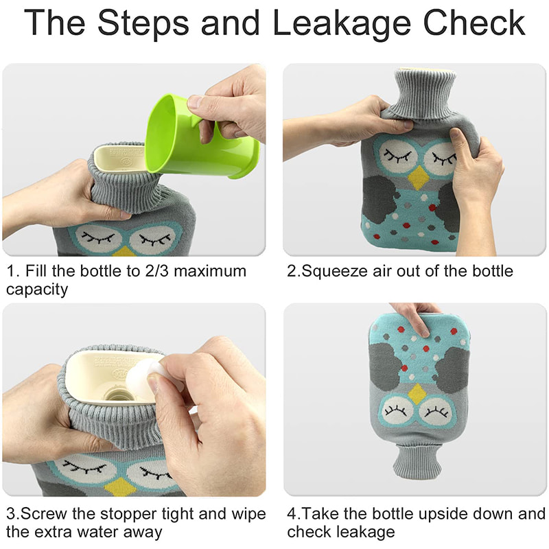 Levereras med ett elegant stickat varmvattenpåsskydd för att förhindra att det heta gummit kommer i direkt kontakt med din hud för att orsaka brännskador, plus att det har ett mer elegant och personligt utseende.