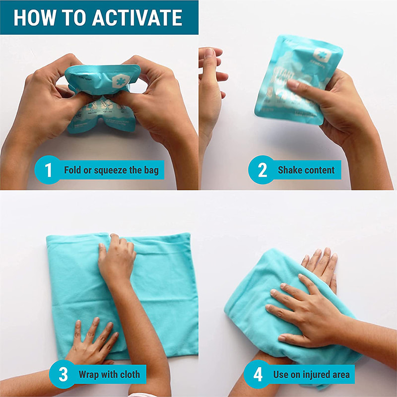 Kläm ihop toppen och botten av förpackningen för att aktivera tills ett pop hörs, skaka ordentligt och applicera på det drabbade området i 10 till 15 minuter för omedelbar lindring.