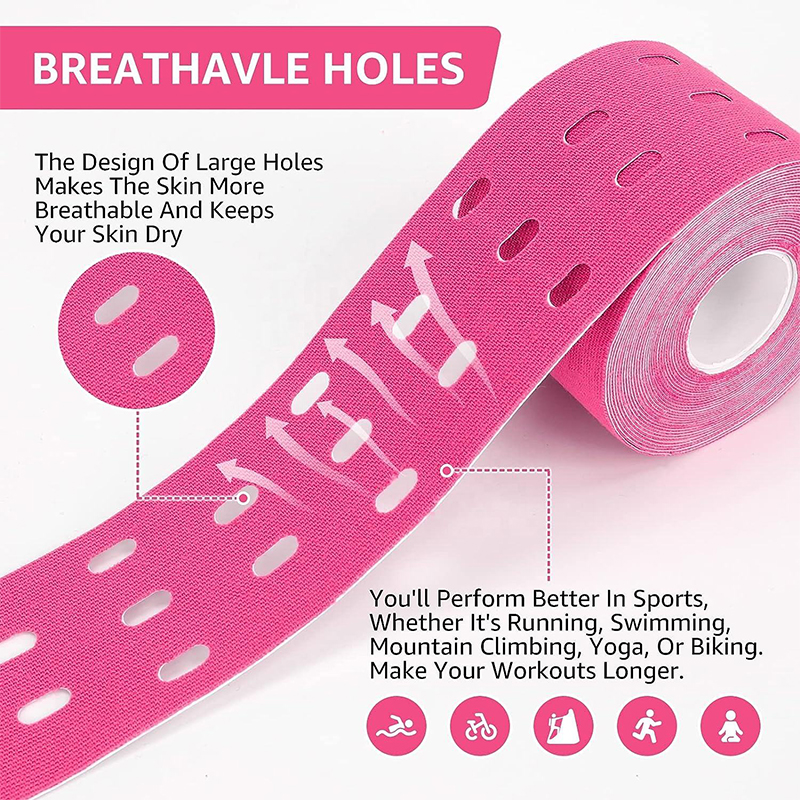 Hem / Produkter / Athletic Tapes & Wraps / Kinesiologitejp / Andningsbar Pro Athletic Kinesiology Tejp med hål Terapeutisk muskeltejp Fysiotejp