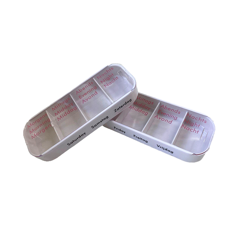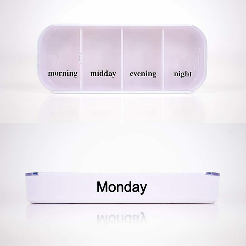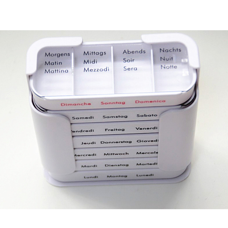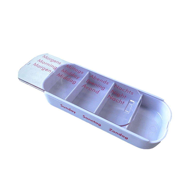 Ytterfodralet är designat genomskinligt och varje bricka har en unik ljus färg för användaren att enkelt urskilja veckodagar.