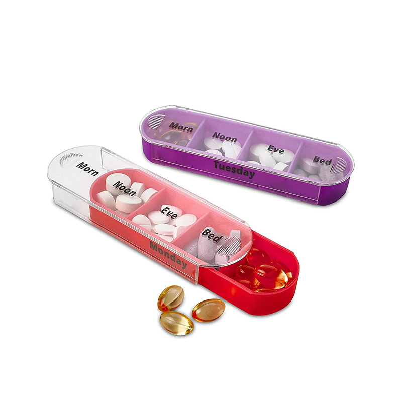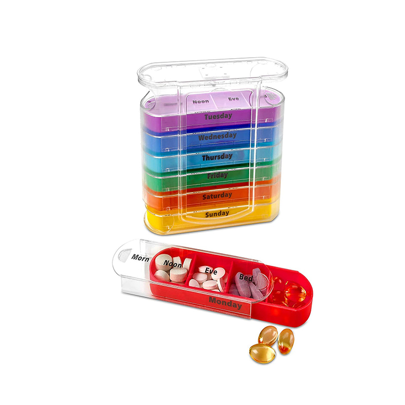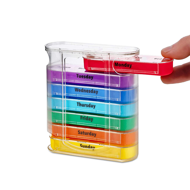 Ytterfodralet är designat genomskinligt och varje bricka har en unik ljus färg för användaren att enkelt urskilja veckodagar.