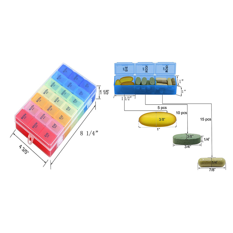 bra påminnelse för alla åldrar. Det hjälper dig att organisera piller två gånger om dagen, 3 eller 4 gånger om dagen med vårt dagliga fack.