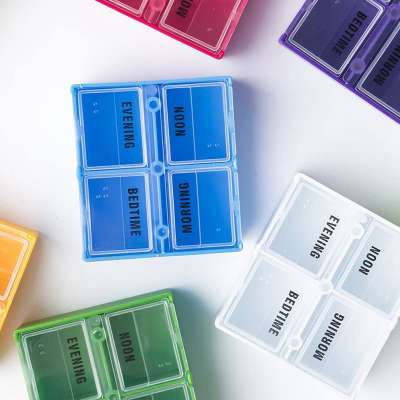 Varje fack är separerat av fyra lättöppnade lock så att du kommer att kunna veta när du ska ta vilka av dina piller varje gång!