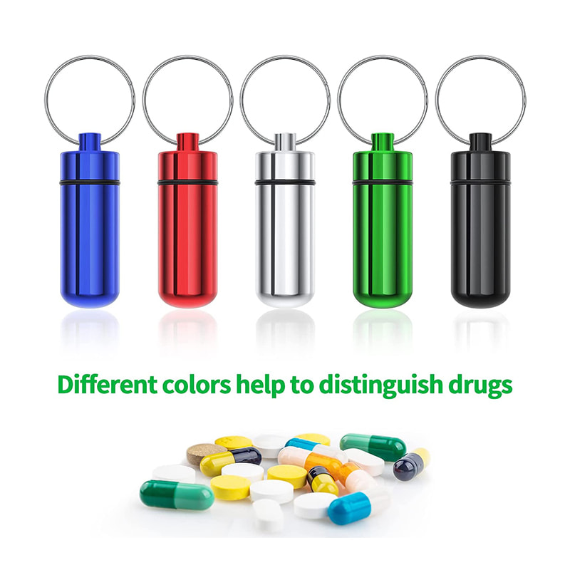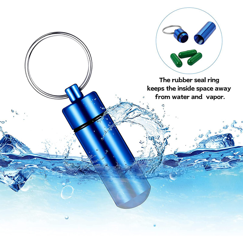 Pillerhållaren har en gummi O-ring packning på skruvlocket som gör den lufttät och vattentät nog att hålla dina piller inne säkert och torrt när du är på semester, resa, camping eller någon utomhusaktivitet.