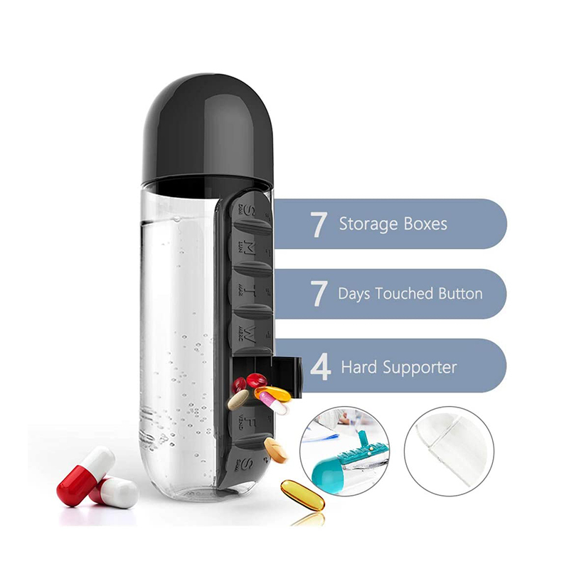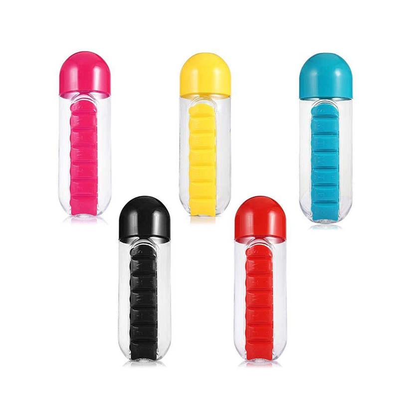 3:e generationens nydesignade vattenflaska med pillerfodral, 20 oz kapacitet.