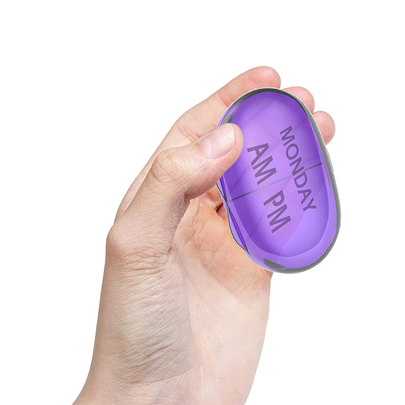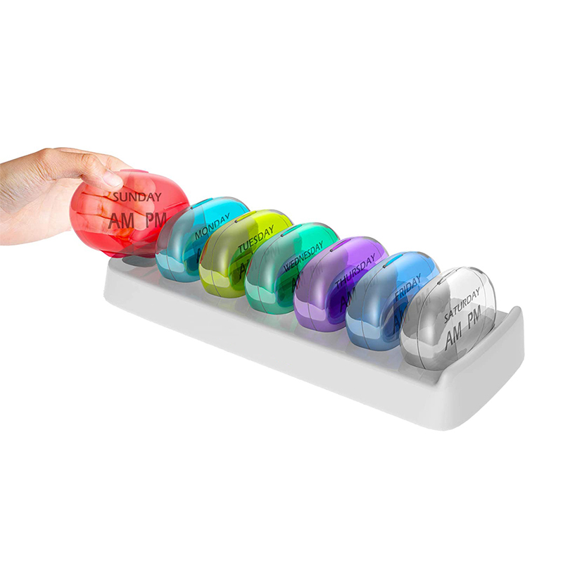 Denna unika pillerplanerares fack vrids på toppen och botten av varandra.