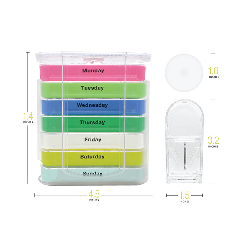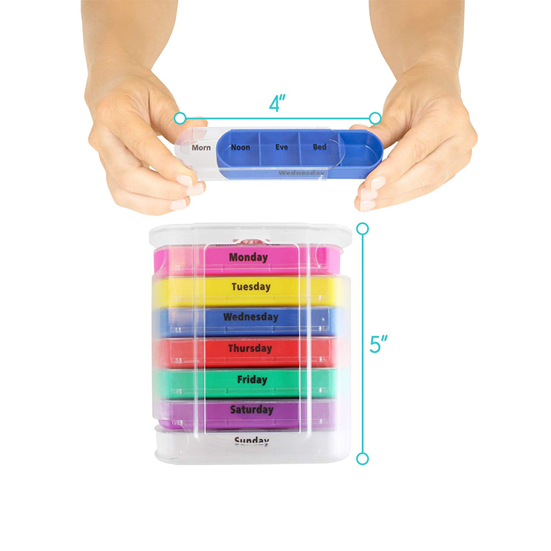 Ytterfodralet är designat genomskinligt och varje bricka har en unik ljus färg för användaren att enkelt urskilja veckodagar.
