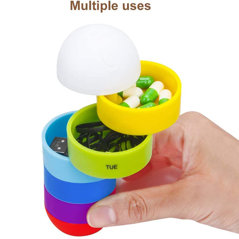 See Details7 fack är staplade för att forma en kolumn, den ligger bra i handen och kommer med en sladd så att du kan hänga pillerhållaren på väskan, ser ut som en dekoration. Eftersom facken ansluter till en pelare tar den liten plats. Du kan till och med stoppa den i fickan.