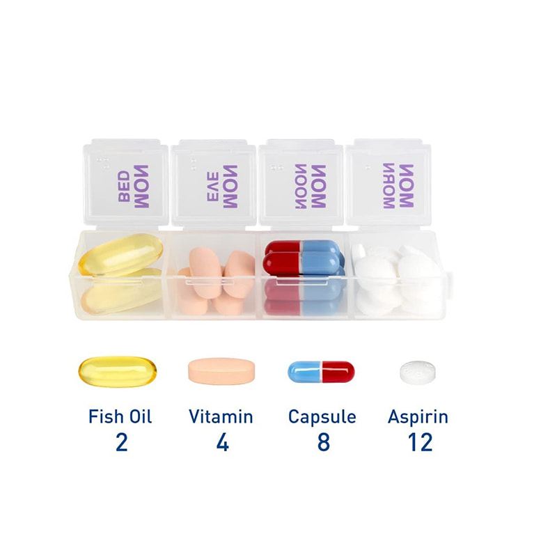PILLERKAPACITET: Rymmer upp till 11 piller per fack (stora med aspirin)