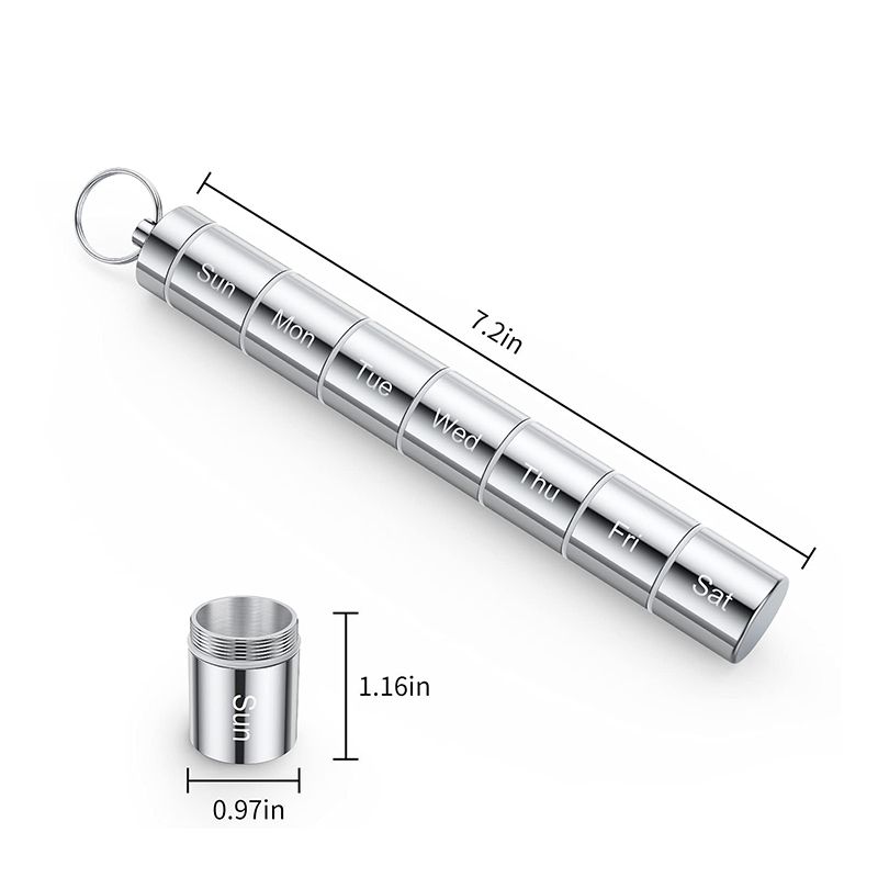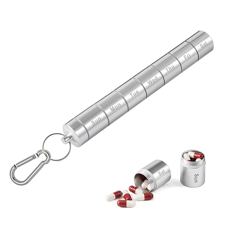 7-dagars pillerhållaren är gjord av aluminiumlegering, som är lätt och robust, inte lätt att bryta ner och kan tjäna dig länge, dessutom är de giftfria, kan hålla dina piller rena