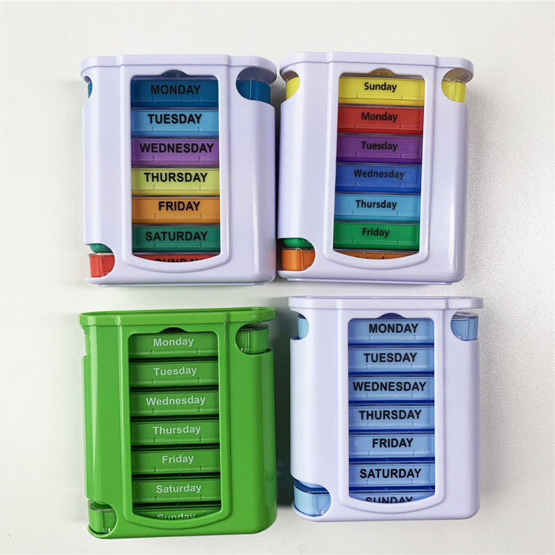Ytterfodralet är designat genomskinligt och varje bricka har en unik ljus färg för användaren att enkelt urskilja veckodagar.