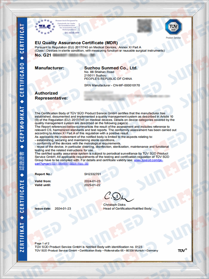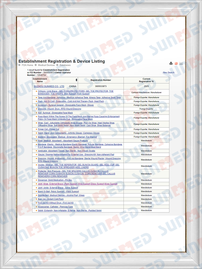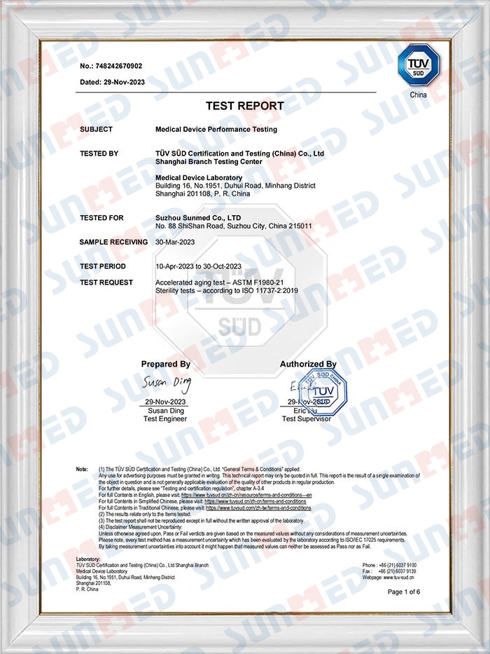 Sunmed har ett professionellt kvalitetskontrollteam som består av hundratals personal som strikt följer inspektionsprocedurerna för att säkerställa att vi uppfyller ISO13485:2016-standarderna. De flesta av våra produkter är CE-certifierade och våra Suzhou-fabriker uppfyller FDA-kraven.